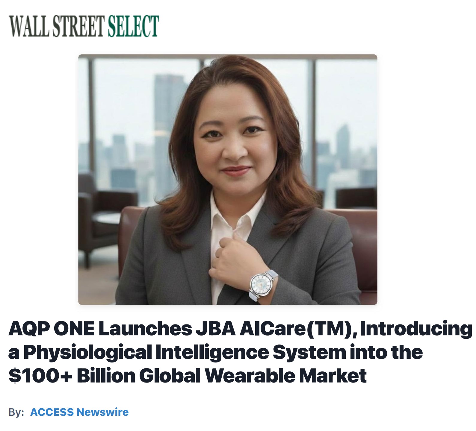 AQP ONE Launches JBA AICare™ – Introducing a Physiological Intelligence System into the $100+ Billion Global Wearable Market