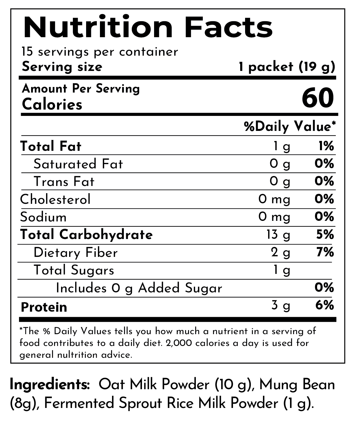 - Made with oats, mung bean, and fermented sprout rice milk powder