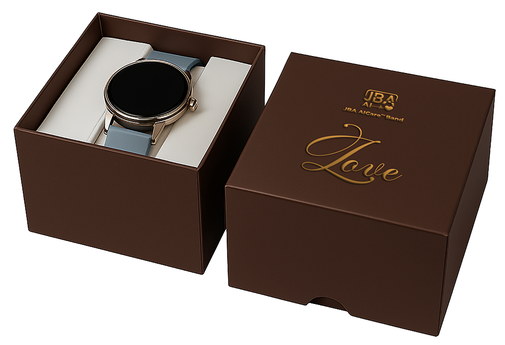 The JBA AICare Micro-HUB Band Love brings cutting-edge AI-powered health monitoring to a comfortable, stylish wristband designed for everyday wellness. With the same advanced functionality as the JBA AICare Ring, the band continuously tracks your heart rate, estimated blood pressure trends, heart rate variability, ECG patterns, sleep quality, stress levels, activity, body temperature, and blood oxygen saturation—giving you real-time insights into your wellness without the need to stay connected to your phone.
